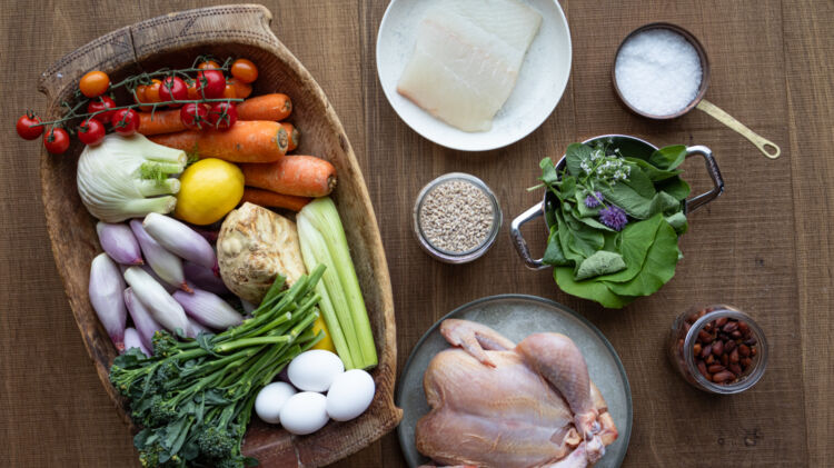 Nils liker å bruke hele råvaren. Derfor starter vi denne uken med en hel kylling. Ved å bruke både kjøtt og bein, utnytter du hele fuglen og kan lage kraft som kan brukes i flere av rettene. Ertesuppen bruker vi først som suppe og så som saus til hvit fisk senere i uken. Urtene kan erstattes med det du har tilgjengelig. Alle rettene er laget med tanke på smak, god utnyttelse av ingrediensene og effektiv tidsbruk på kjøkkenet. Da bruker du mindre tid, reduserer matsvinn og kostnader ved innkjøp av råvarer. Prepp ukens hovedingrediens før du begynner på rettene.